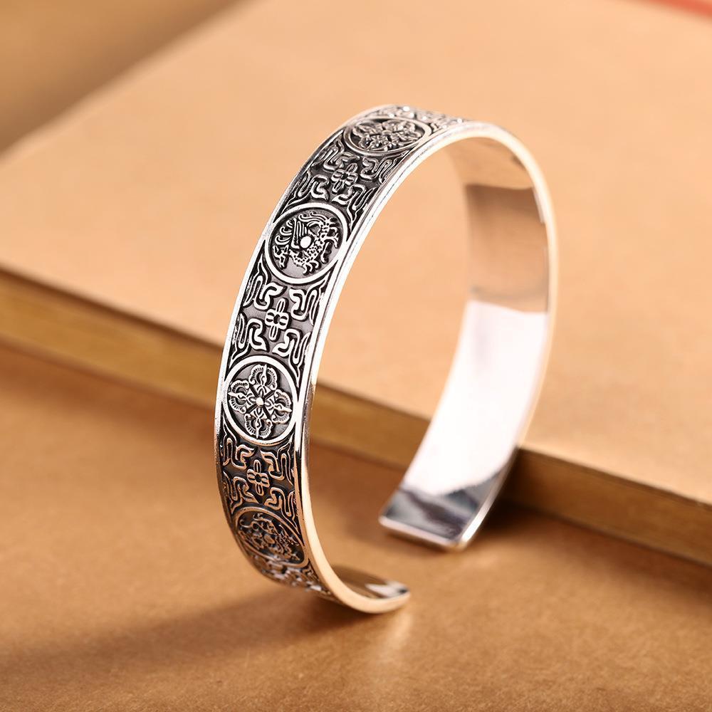Unveil the pure elegance of the 999 Sterling Silver Bracelet, a timeless piece that promises not just beauty but a connection to a rich tradition. Crafted with utmost precision, this bracelet showcases the finesse of high-quality 999 sterling silver, renowned for its brilliant luster and exceptional purity. The intricate designs etched onto the surface are a testament to skilled artisanship, adding an air of mystique and culture to your wrist.